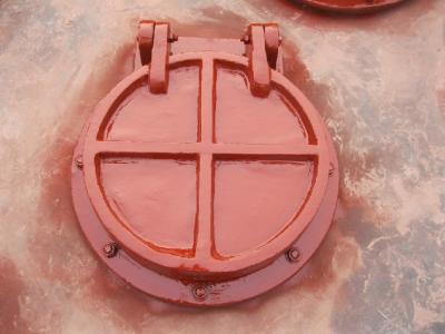 鑄鐵拍門由閥座、閥板、密土封圈、鉸鏈四部分構(gòu)成。