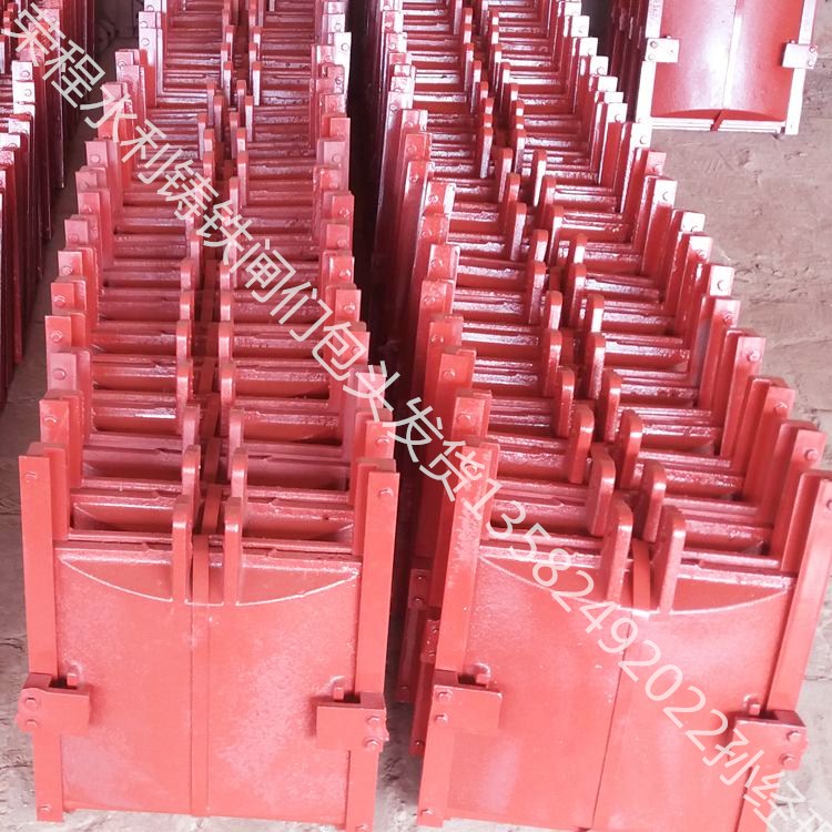 水渠閘門(mén)由門(mén)框、閘板、密封圈及可調(diào)式楔形壓塊等部件組成。密封面上鑲有銅嵌條,保證了密封性和耐磨性。久用磨損后,并可通過(guò)楔形壓塊調(diào)整來(lái)保持正常工作。